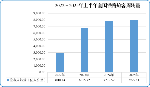—2025年上半年全國(guó)鐵路旅客周轉(zhuǎn)量